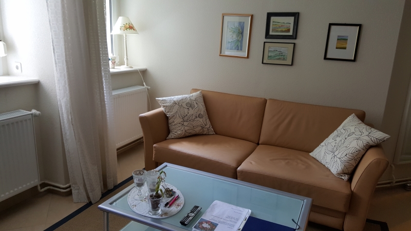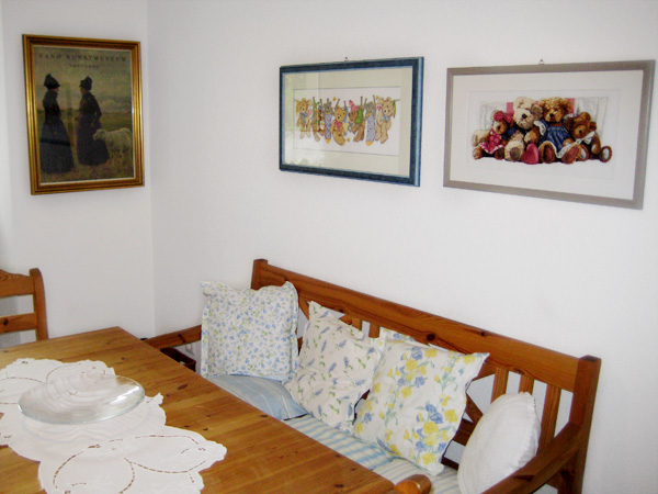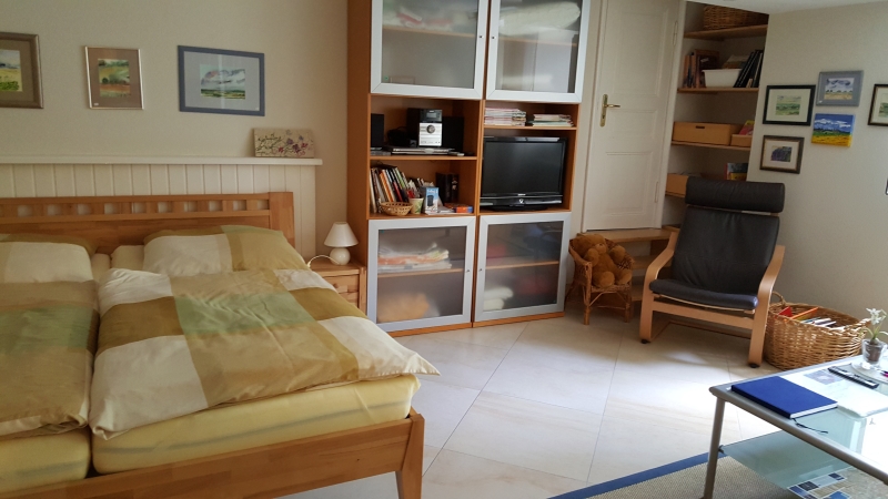 Der Wohn- und Schlafbereich ist mit Doppelbett (180x200), Schlafsofa (130x200), Baby-Reisebett, Hochstuhl, Kleiderschränke, TV und Stereoanlage ausgestattet.